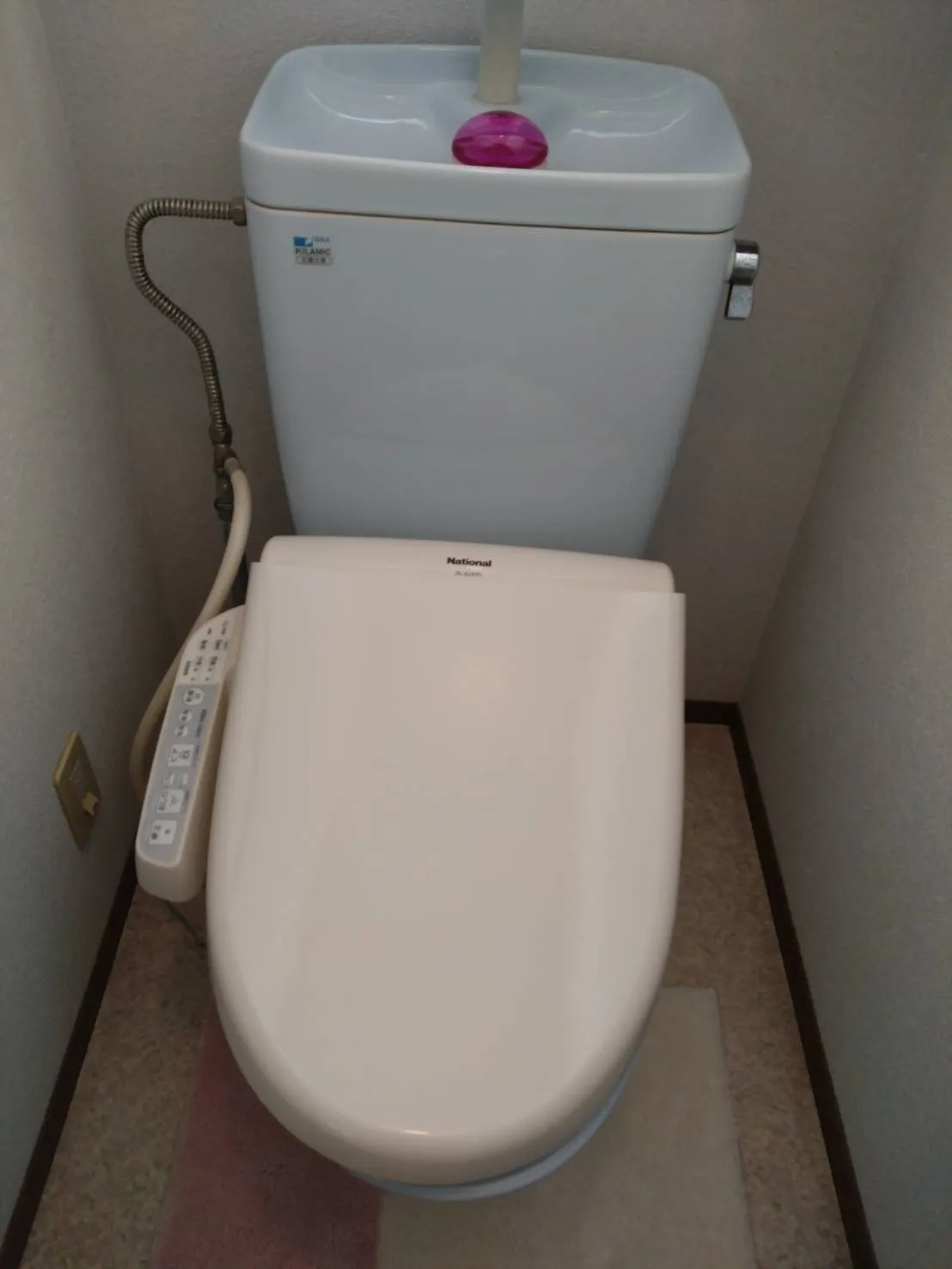 周辺工事: 既存の古い便座を撤去し、ビューティ・トワレを設置。電源や給水ホースの接続を丁寧に行いました。